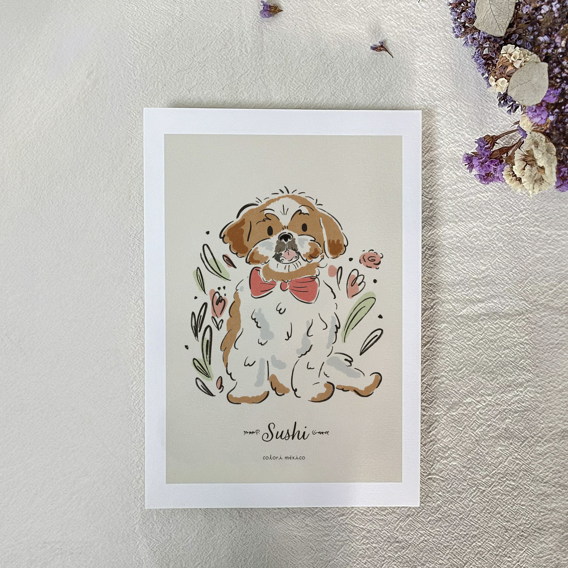 Incluye una ilustración exclusiva de tu mascota, hecha a mano e impresa con tintas duraderas.
